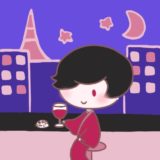 「ボジョレーヌーボー解禁」にちなんで描いた「バーでワインを飲むオリキャラのイラスト」紹介記事です。