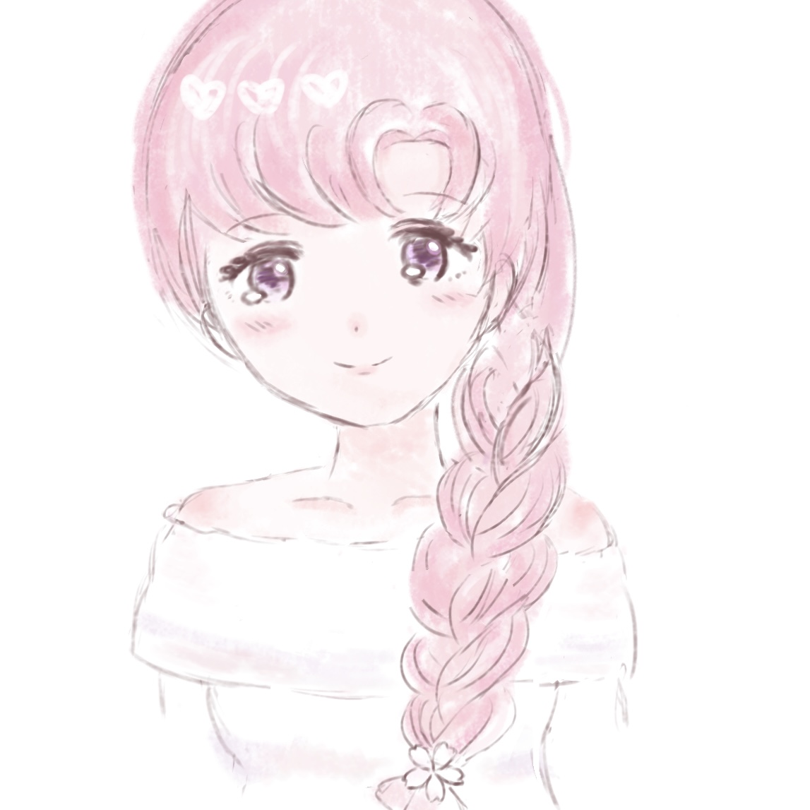 ・髪型 薄いピンク色のロングヘア。地毛はゆるくウェーブしている。